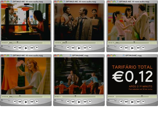 OPTIMUS A,B,C...----------------------Optimus A,B,C... is a commercial video for a Optimus, a portuguese mobile phone company, broadcast in private and public TV stations.The Art Direction explored different site specific interventions in urban spaces and interior spaces in order to create the required ambient for each particular scene. It also implied the construction of some of the sets.----------------------Title: Optimus A,B,C...