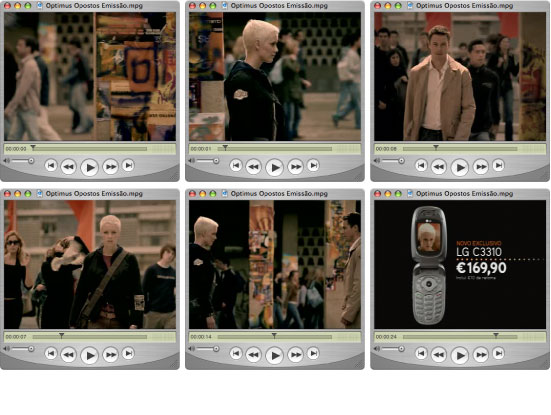 OPTIMUS OPOSTOS----------------------A video commercial for Optimus, a portuguese mobile phone company.The Art Direction explored different site specific interventions in urban spaces and interior spaces in order to create the required ambient for each particular scene. It also implied the construction of the set of an elevator.----------------------Title: Optimus Opostos